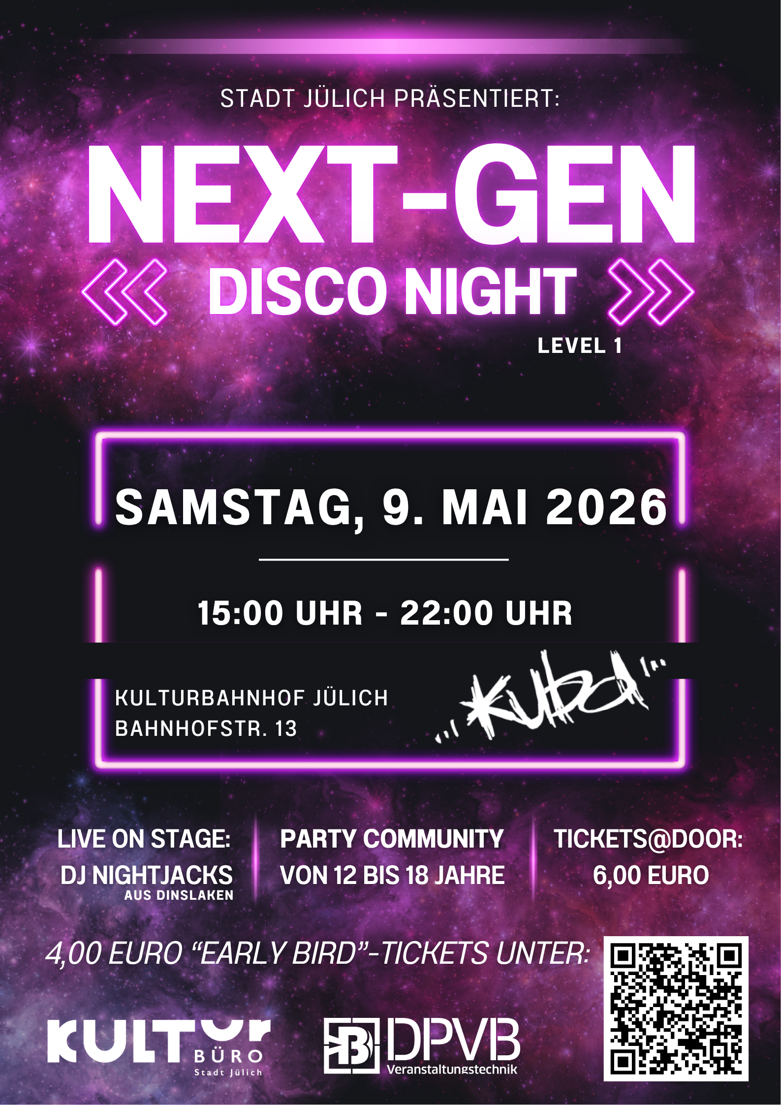 NEXT-GEN DISCO NIGHT – Level 1 bringt frischen Sound nach Jülich! Am 9. Mai 2026 verwandelt sich der Kulturbahnhof in den Hotspot für alle zwischen 12 und 18 Jahren. Mit […]