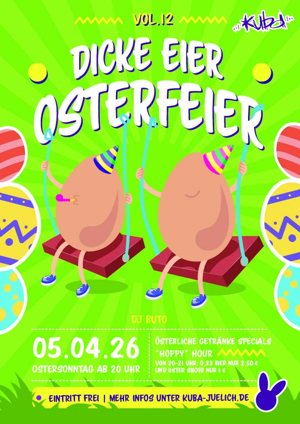 Mit DJ Buto Österliche Getränke Specials "Hoppy Hour" von 20-21 Uhr: 0,33l Bier nur 2,50 € und Oster-Shots nur 1€. Eintritt frei!