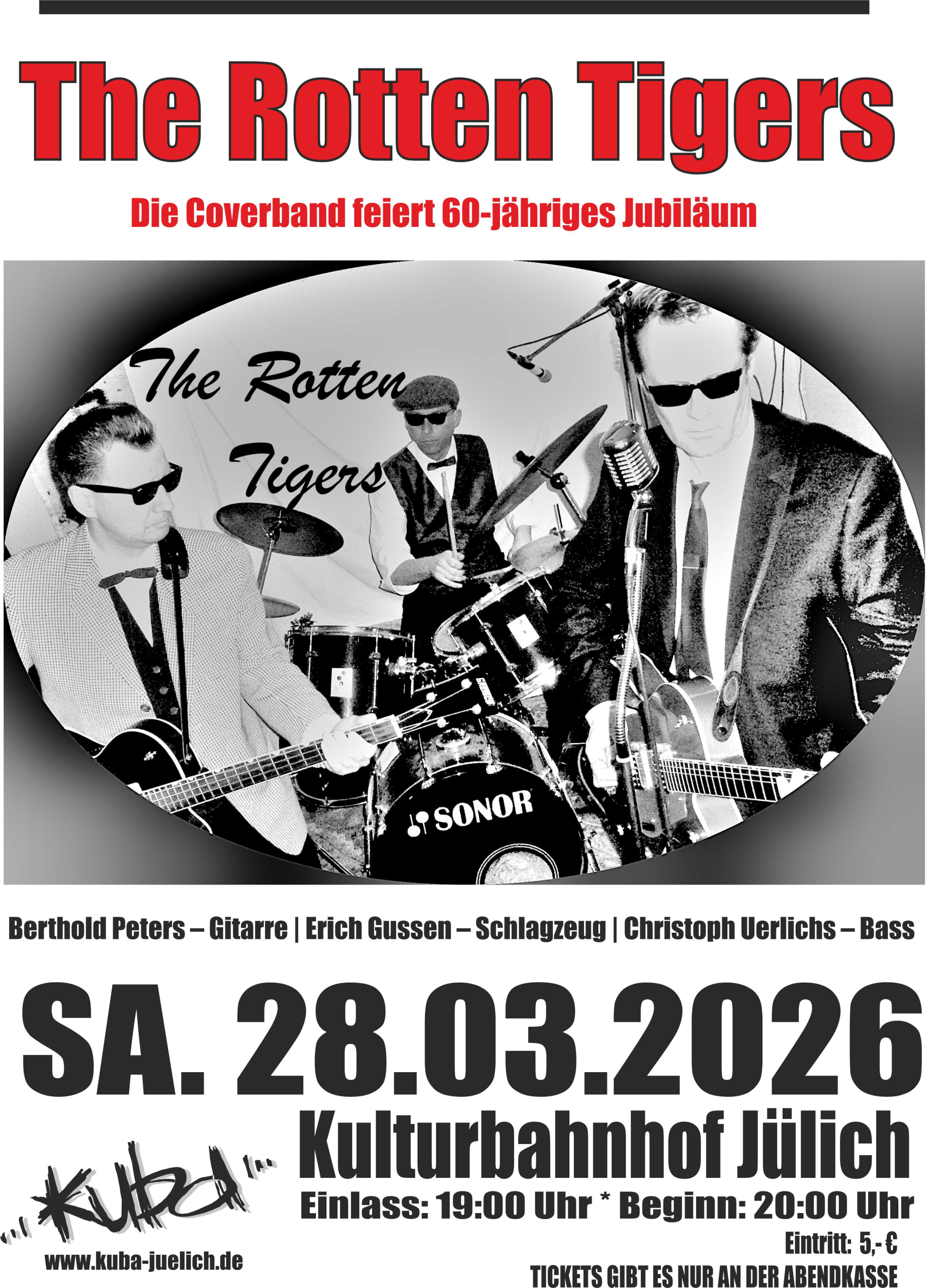Töricht live im KUBA – 14.03.2026 Aus der Region Düren/Jülich direkt ins Herz: Töricht! Gegründet mitten in der Pandemie, sind sie der laute Gegenentwurf zum Stillstand – roh, emotional und […]